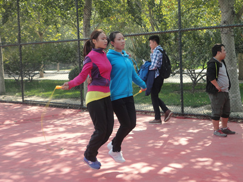 (本站讯)10月17日上午,公司第二体育场网球场熙熙攘攘,员工女子双人跳绳比赛火热进行中,公司学子朱振红、哈燕燕表现不俗,获得第六名的好成绩。