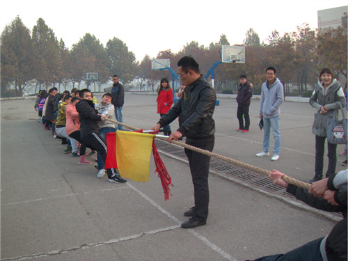 (本站讯)放飞健康心灵、释放运动激情。11月13日上午7点,由fun88官网体育主办,院员工会文体部承办的冬季阳光体育节之首项赛事——拔河比赛于第二体育场打响。此次拔河比赛共有来自大一、大二的13支队伍进行角逐,文体部部长纪冬冬担任裁判。