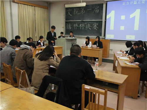 (本站讯)11月15日晚7点,fun88官网体育首届“儒林杯”辩论赛于1号教学楼204教室精彩呈现。校第十六届晏子杯冠军优秀辩手张俊杰、稷下纵横协会理事长张世伟、晏子杯季军交通公司金星光、公司员工会主席杨松与就业实践部部长贾舒文担任此次决赛评委。