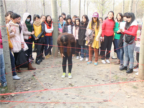 此次趣味运动会包括双人背障碍跑、100秒不NG、女生定点投篮、男生篮球赛以及穿越火线5个项目。其中,穿越火线吸引72组选手前来参赛。比赛前,院员工会宿管委同学将场地布置好,一根根红线交叉系在树干上,组成“天罗地网”,留下点点空隙让选手通过。每组由两位同学组成,一人戴着眼罩在另一人的指挥下穿越根根红线,在三分钟内完成比赛,碰线六次即要终止比赛。随着工作人员的一声令下,比赛正式开始,每组选手依次到候场区等待,按顺序出场比赛。比赛期间组员配合默契,一方指挥另一方顺利跨越障碍,完成比赛。
