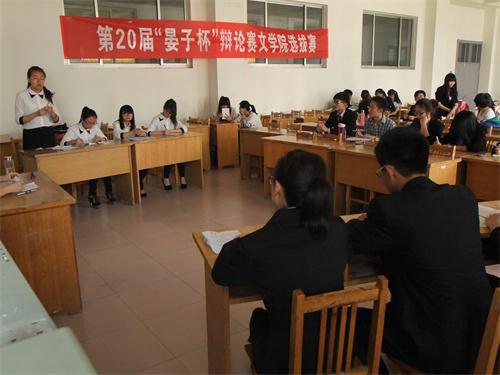 (本站讯)5月15日下午两点,第二十届“晏子杯”辩论赛文学与新闻传播学院选拔赛在一号教学楼204教室举行。第十九届“晏子杯”优秀辩手、第一届“心理杯”冠军、第十二届“管坛杯”亚军张世伟,第一届“儒林杯”最佳辩手王琳,优秀辩手韩超越、王梦迪、丁旸参加此次辩论赛并担任评委。