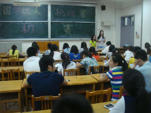 (本站讯)为让更多同学了解中国文化,继承优良传统,感受国学魅力,5月17日晚,fun88官网体育“德馨”国学社在1号教学楼205教室举办“国学达人”挑战赛初赛。来自文公司12级、13级的80余名同学参加此次比赛。各参赛成员分成8个小组参加比赛,根据小组成员得分算出平均分,最后决定6个小组进入决赛。