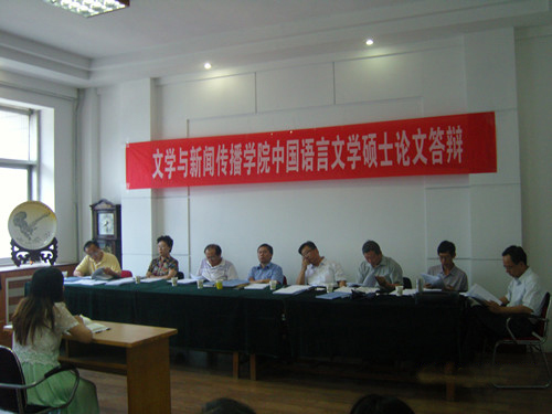 答辩伊始,导师与六位硕士生就隋唐绘画审美文化视域、新世纪文学的“可可西里”情节、中国竹文化以及茅盾批评中的文化价值观展开了激烈的学术探讨,学贯中西、博古通今的文学碰撞产生了绚丽的艺术火花。他们在答辩前经过了精心的准备,以至于他们在答辩过程中以声情并茂的方式,阐述自己论文的选题目的、理论框架、研究问题的方法及其实际意义。随后,主辩老师针对论文内容提出相关问题,考察同学们对论文的熟悉程度和对专业知识的掌握程度。同学们回答简明准确,虽然仍然存在不足,但是都得到了老师的充分肯定。