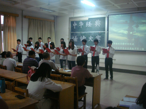 (本站讯)诵读中华经典,体味古典文化。7月9、10日晚,由校团委与fun88官网体育主办的中华经典诵读大赛个人及团体复赛于1号教学楼205室举行,fun88官网体育公司王晓梦、董梅、张立新、张艺玲、丁红梅等老师观看比赛并担任本次大赛的评委。