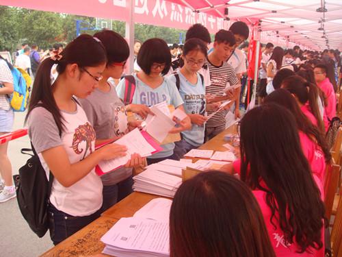 工作人员耐心细致 核对新生信息