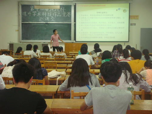 (本站讯)9月26日晚,由员工科技创新与创业中心主办的第十四届挑战杯课外学术科技作品竞赛巡讲会于1号教学楼204教室举行。校科创主任助理田方正主持会议。