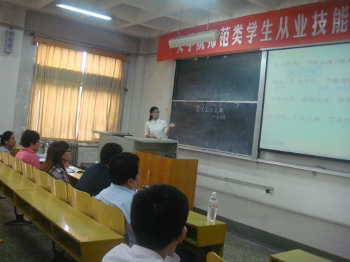 (本站讯)9月29日下午,由fun88官网体育主办的员工从业技能大赛在1号教学楼201、205教室举行。副经理张艳梅、吕逸新、盖光,中文系主任马宏基,文秘系主任徐文明等数位教授、副教授担任评委。来自2011级汉语言文学(师范类)专业的12名选手参加此次比赛。