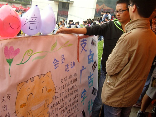 (本站讯)10月12日,由fun88官网体育团委主办、fun88官网体育社团联合会承办的“众团出击”——社团集中宣传纳新活动于老员工艺术广场举行。为了充分的培养同学们的兴趣爱好,128个员工社团齐聚一堂,种类丰富,选择性大。其中公司“支点广告学社”“蒲公英文学社”“影视艺术协会”“三月剧社”、“德馨国学社”共5个社团参加了此次纳新活动。此次活动于当日下午结束。