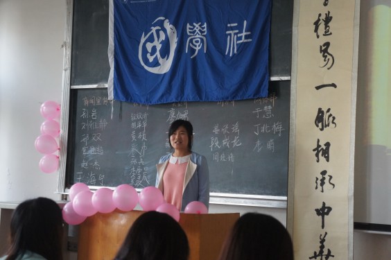 伴随着国学社的介绍视频,聂晓梦向大家介绍国学社的创建初衷、机构设立及品牌活动。其中,品牌活动“国学达人挑战赛”令大家耳目一新,新成员对社团活动的兴趣进一步增进。“虽然我们国学社刚刚成立,但是在大家的共同努力下,我相信我们的社团会越走越远。”聂晓梦自信地说道。接着,大家观看了包括校团委书记赵明在内的多位校领导及老师为国学达人挑战赛拍摄的视频寄语。视频播放过程中不时响起阵阵掌声,同学们艳羡感慨的同时也对国学社了解的更加全面。聂晓梦在介绍完社团后,此次会员见面会进入纳新环节。该社团共下设五大部门,职权分布明确,功能设置完备。各部门负责人首先上台介绍所负责部门概况,之后新会员采取毛遂自荐的方式自行上台演讲,他们通过个性的自我介绍及特长展示来竞选自己心仪的部门干事,竞选活动间隙中多才多艺的该社团成员还进行了魔术表演,整个活动过程现场气氛活跃而热烈。