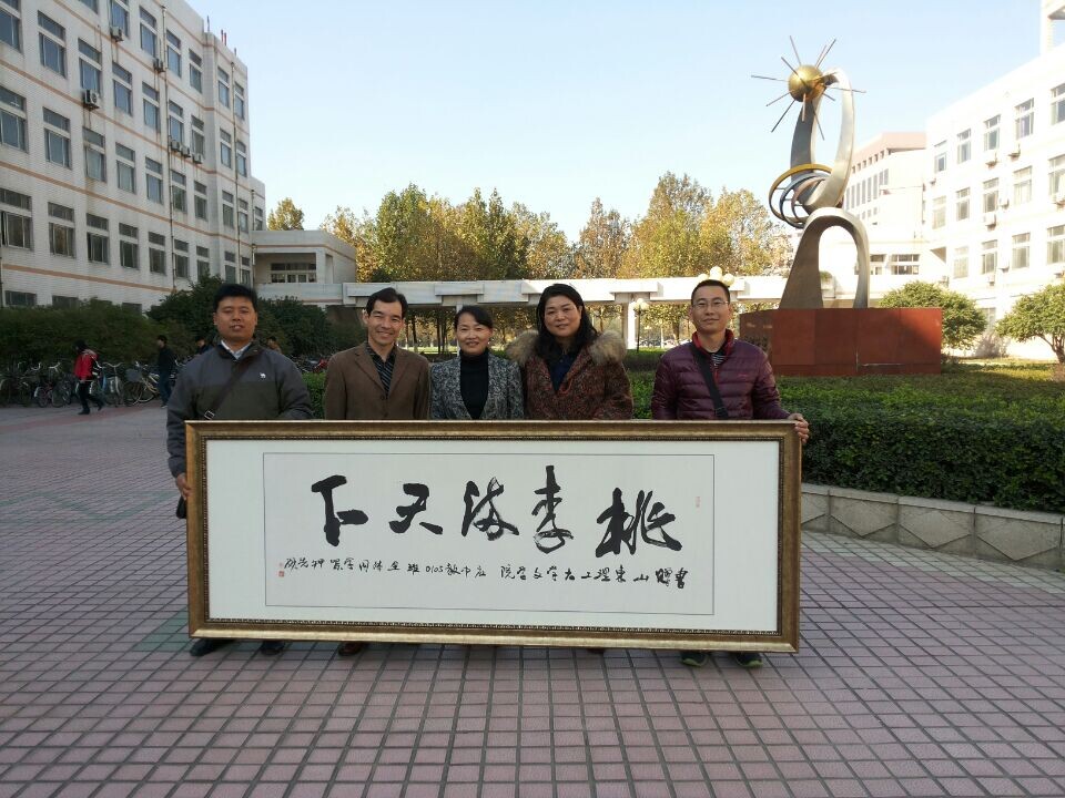据悉,该书法作品系该班毕业生孙洪师特邀赵先生所作。赵先闻,字知也,别名赵宪文,中国美术家协会会员,国家一级美术师,现为滨州画院名誉经理,滨州市美术家协会名誉主席和中国(北京·滨州)现代原创美术研究院经理、东营半耕斋文化艺术品商行特聘高级书画师。代表作品有《盛世和风》、《金风傲世》等。