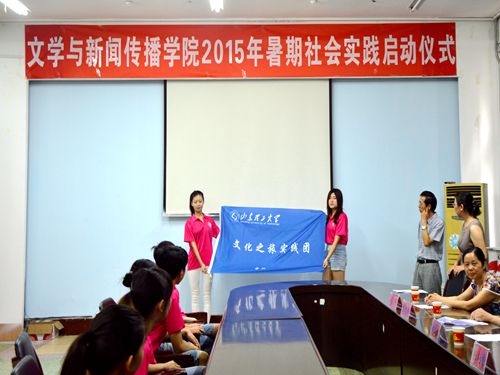 仪式进行第一项,杨晓春就此次暑期社会实践发表讲话,传达2015年暑期社会实践工作精神,简要说明暑期社会实践的意义。他指出,安全是实践的重中之重;实践需要耐心、毅力、坚持、干劲和冲力;各实践队成员应团结互助,齐心协力,不让任何一位成员掉队;实践过程中需及时总结,及时反思,在思考中不断进步,提升自我。并对此次社会实践表达了衷心的祝愿。接着,张艳梅宣读2015年暑期社会实践重点团队名单。仪式第三项,杨晓春、张艳梅、刘芹分别为各实践团队代表授旗,各实践队派代表上台领取队旗。启动仪式在热烈的掌声中结束。