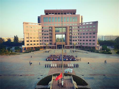 秋风渐凉,晨曦微露,升旗仪式正式开始。由公司国防生组成的国旗班迈着铿锵有力的步伐护送国旗入场,伴随着慷慨激昂的《义勇军进行曲》,鲜艳的五星红旗迎着朝阳冉冉升起,飘扬在鸿远楼前广场上空。全体师生行注目礼,庄严肃穆,爱国之情溢于言表。