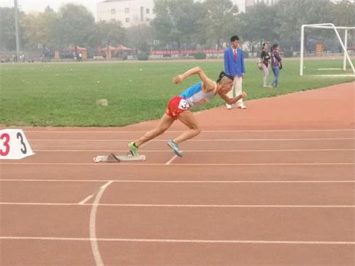 比赛开始之前,张皓然早早来到赛场进行热身准备活动。压腿,深呼吸,体育场的喧嚣与他的淡然自若形成鲜明的对比。振奋一吼,踏上跑道,凝视前方,带着必胜的信念,全场屏息,空气凝滞,只听“嘭”的一声发号枪响,他犹如猛虎下山闪电般冲夺而出。随着比赛的进行,选手们渐渐拉开距离,在接近终点时,稍稍落后的张皓然奋起直追,他就是那支一直在蓄力的钢箭,找准时机,呼啸而上,超越对手,穿破终点线,穿破全场雷鸣般的掌声,刷新了自己的记录,超越自我,夺得桂冠。一抹红霞灿九天,红似火的跑道,浸染着他拼搏的汗水,他,实至如归。