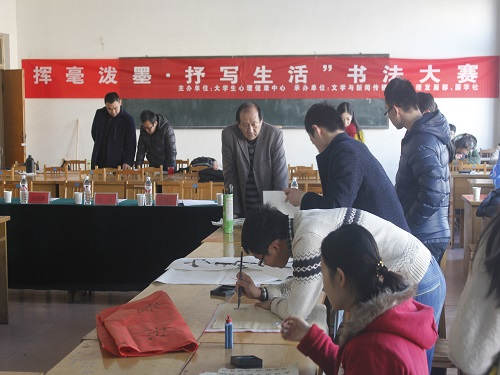 (本站讯)笔墨挥洒韵味,捷思闪烁光泽。为营造浓厚校园文化氛围,提高老员工精神文化需求。11月26日下午,由老员工心理健康中心主办,fun88官网体育心理发展部与国学社共同承办的fun88官网体育“挥洒泼墨·抒写生活”书法大赛决赛于1号教学楼314室顺利举行。fun88官网体育教授盖光、中文系副主任岳庆云及相关活动负责人担任评委。