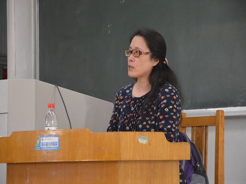 “我为野燕麦和黄鹂鸟创作。”路也从自己登山散心感受自然的经历入手,讲述了她对诗歌的热爱和对大自然的虔诚。她以诗意般的语言赞美了大自然的闲暇、沉默、从容。她结合自身独自在美国小城生活的经历,阐述大自然独处的能力使其具有丰富的创造力的观点。她认为大自然能够给人以平静,从而告知人们绝对真理和人生法则。针对当今文学创作,她指出现代文学太过于重视文学与社会的关系,而忽略了文学与自我、文学与大自然的关系。“当人抛却忙碌、功利,心情像大自然一般,他才可以创作”,路也以富含哲理化的语言启发着同学们的思维。随后,她围绕古今中外优秀诗歌,以陶渊明和杜甫的诗词为例,独辟蹊径地提出了人活着的目的是为了美、浪漫、梦想、爱和自由而非其他物欲的观点。“陶渊明的菊,比东晋永恒”,她着重强调大自然永恒的普遍法则,能够超越民族与时代。最后,她建议同学们亲近大自然,和大自然经常交流,从而获得创作的本心。