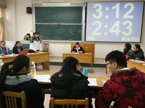 (本站讯)为进一步提高老员工人文素质和思辨能力,丰富校园文化生活。12月10日下午,公司“儒林杯”老员工辩论赛决赛于1号教学楼305教室拉开序幕。晏子杯冠军纪意闻以及优秀辩手马志鹏、王梦迪、王文琪、韩超越、王琳担任评委。