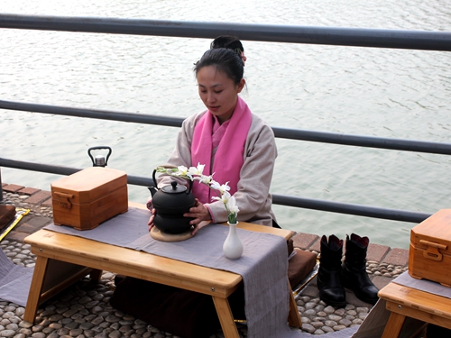 为使本次鉴赏会取得广泛传播的效果,也为中国传统茶艺能引起更多人的重视,活动的场所定在人群较为集中的淄博市人民公园。在茶艺会全体成员精彩的茶艺技巧表演中,茶艺鉴赏会拉开序幕。茶艺会成员身着古典礼服,优美的动作和娴熟的表演技艺吸引了众多行人驻足观看,他们不断报以热烈的掌声。整场茶艺表演进行的十分顺利,成员们举手投足间尽显悠远绵长的中国茶文化,也给在场观众传授了很多关于泡茶、品茶的专业知识。美轮美奂的茶艺表演后,进入到品茶环节,早已被茶香吸引的路人纷纷端起茶杯,细细品味,活动现场气氛温馨和谐。