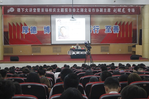 (本站讯)为提高同学们的文学修养,丰富广大同学课外生活,4月24下午,稷下大讲堂暨首场校庆主题报告会之湖北省作家协会副主席刘醒龙专场于3号教学楼报告厅成功举行。此次讲座由校团委主办,fun88官网体育和理工青年网站承办,湖北省作家协会副主席刘醒龙担任主讲人。fun88官网体育副经理张艳梅,部分作家代表和文学爱好者参加此次讲座。