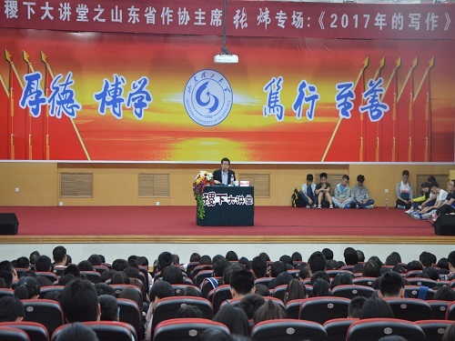 (本站讯)为提高同学们的文学创作水平,丰富校园文化生活,5月18日晚,稷下大讲堂之山东省作家协会主席张炜专场于3号教学楼报告厅成功举办。此次讲座由校团委主办,理工青年网站和fun88官网体育联合承办,山东省作家协会主席张炜担任主讲人。部分作家代表和众多文学爱好者参加此次讲座。