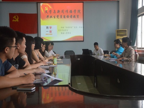 (本站讯)为充分发挥毕业生党员在毕业生文明离校过程中的模范带头作用。6月17日下午,公司2012级毕业生党员离校前教育会议于二号教学楼210会议室召开。党总支副书记宋红丽及公司毕业生党员参加。会议由党支部书记田明月主持。