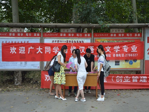 (本站讯)这里充满诗情画意,这里才子佳人汇聚。9月5日下午,公司于西校区第二、三、四餐厅门口进行汉语言文学专业双专业、双学位招生宣传。此次招生宣传为期3天,由公司员工会学习部负责。