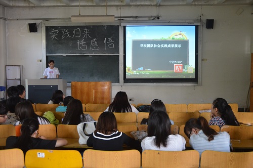 活动伊始,主持人蔡静对前来参加感悟活动的优秀社会实践团队表示欢迎,并简单介绍此次活动的流程与意义。首先,由各个社会实践团队代表上台演示PPT,对团队进行简要介绍,讲述实践经历,分享收获感悟。“行知”社会实践团负责人朱琳以生动有趣的语言分享他们在实践活动中发生的小故事,引起现场同学们的共鸣。她介绍道:“行知”社会实践团以支教为主,通过讲授国学、主持、舞蹈、安全、美术、手工等,让孩子们了解更多的课外知识,增长见闻。“sos”社会实践团的负责人魏欢则介绍了其团队“分工合作”的实践亮点。“我们团队旨在调查物流公司的运作情况,队员们来自不同地域,我们便利用这个特点将其转化为优势,亲身体验、分头调查、统一汇总。”“一个篱笆六个桩”实践团则着重讲述了有关无偿献血的故事与人,呼吁大家将这份爱心传递下去。活动氛围愉快温馨,同学们积极交流心得体会、受益匪浅。最后,主持人对此次活动进行了总结,活动在阵阵掌声中结束。