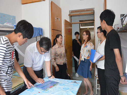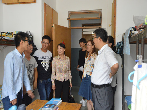 韩德信书记一行人先后走访慰问了男生2号宿舍楼和女生8号宿舍楼,每到一个宿舍,亲切地询问同学们的生活学习状况、军训的感想以及是否适应新的环境,并仔细查看寝室的各种设施是否完善。走访过程中,三位领导特别叮嘱同学们要注意休息,及时调整军训后的状态,以全新的精神面貌迎接老员工活,希望同学们要学会生活,相互帮助,相互理解,尽快地进入老员工角色。寝室里欢声笑语,洋溢着师生间的融融情谊,荡漾着节日里的温馨话语:“同学们仲秋节快乐,大家收到月饼了吗?希望大家学习生活愉快。记得常给父母打个电话,让家人放心!”热情的话语,亲切的问候,温暖了同学们的心灵,让新生感受到家一般的温暖,感受到公司的浓浓关怀。同学们也对公司领导和老师的关心由衷的感谢,表示要奋发努力,让老员工活充满价值感。