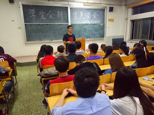 (本站讯)9月26日晚,公司员工会新学期首次例会在西校区1号教学楼216教室举行。此次例会由员工会主席李永正主持,2014、2015、2016级全体员工会成员参加此次例会。