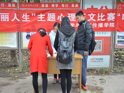 此次宣传活动为期两天。在宣传活动现场,心理发展部成员集体出动,通过悬挂活动宣传条幅和分发活动单页的形式积极进行宣传。在场负责人悉心向大家介绍此次活动的相关内容并认真回答同学们的问题。比赛形式为征文和手抄报两种形式。“绽放生命精彩,畅享绚丽人生”主题征文比赛旨在让同学们观察生活,留意身边事,时刻保持积极心态,阳光心灵。“呵护心灵,健康成长”心理知识手抄报比赛则希望同学们在创作过程中了解更多与心理健康相关的知识。此次活动要求作品原创,结构新颖,布局合理,针对老员工心理健康,体现出健康与活力。参与者有十天的时间充分发挥自己的智慧与天赋来准备作品。心理发展部将于11月10日在东西校区分别派人收集作品。据悉,此系列比赛将于西校区1号教学楼314教室和214教室举办,此次活动奖励丰厚,征文和手抄报比赛各有一等奖2名,二等奖3名,三等奖5名,优秀奖5名,另外征文比赛还将评出3名最佳人气奖。此活动激发了同学们参与的热情,大家踊跃报名。