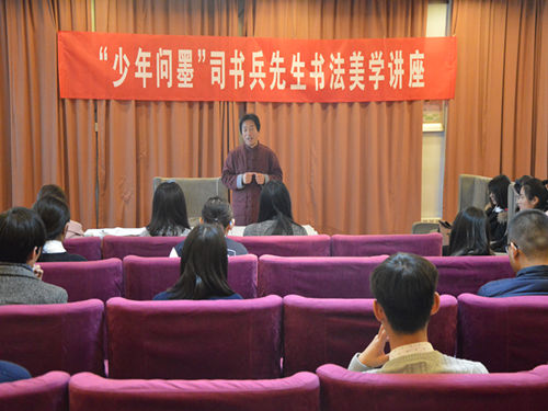 (本站讯)笔墨挥洒韵味,捷思闪烁光泽。为对同学的书法学习进行指导,11月3日下午,“少年问墨”司书兵美学讲座于老员工艺术中心106教室举行。此次书法美学讲座由公司国学社主办,山东省淄博市艺术公司董事长司书兵担任主讲人。