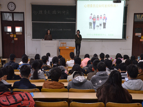 (本站讯)为使各班心理委员更好地协助公司或心理健康教育中心在班级开展相关工作。11月10日下午,心理委员培训讲座于东校区3号教学楼310教室举行。老员工心理健康教育中心张爱莲、滕亮担任主讲人。