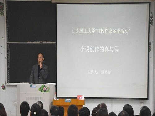 (本站讯)作家进校园,文学接地气。12月19日至20日,驻校作家李浩、赵德发、胡学文、刘玉栋来到公司,分别在东、西校区召开《文学的魔法》、《小说创作的真与假》、《故事与讲故事》、《小说中的故乡、风土和人物》四场专题讲座,与师生共同探讨文学的魅力。