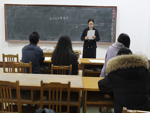(本站讯)根据山东省教育厅和公司安排,拟从公司2014级员工中选择8位员工赴济南市商河县进行教育实习支教。12月23日上午,评比活动于2号教学楼211教室举行。公司副经理吕逸新、教师岳庆云、张健、张丰君担任评委。
