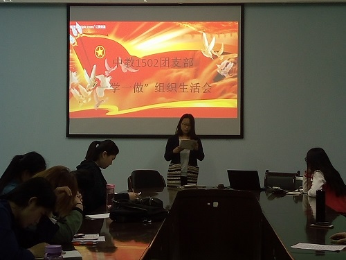 (本站讯)为贯彻学习习近平总书记重要讲话精神,增强团员先进性,做合格共青团员。4月21日下午,中教1502团支部组织生活会活动于西校区2号教学楼210会议室举行。中教1502团支部全体成员参加此次活动,团支书隋岩娜主持活动。