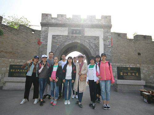 首先张玉霞带领同学们在蒲家庄进行参观,引领同学们了解蒲家庄的革命历史,莱芜战役后华野淄川整军为人民解放事业做出极大的贡献,并特地为此设立了华野整军纪念碑。而后进入蒲松龄故居,了解淄川的风土人情以及蒲松龄的身世、一生的发展状况、《聊斋志异》的创作背景、居住环境等,同学们对这位写鬼写妖刺贪刺虐的“聊斋先生”有了一个深层次的了解,蒲松龄一生穷困潦倒,科场的不得志促使蒲松龄奋志著述,促成了近二百万言的小说、诗词、文赋、俚曲、杂著、戏曲等不朽之作,尤以《聊斋志异》为名。随后在淄博电视台的带领下进入聊斋文化园,青砖灰瓦,披荔攀萝,烟雾缭绕,四处萦绕着人鬼妖狐的神秘气息。在柳泉遇到1966年在抗美援朝战争中击落美军战机的三位革命老军,同学们近距离聆听了老革命讲述革命历史,激发内心拳拳爱国心,增强五四青年责任感。随后班级导师带领同学们聆听了淄博市非物质文化遗产——蒲松龄用淄川方言创作的说唱与戏剧作品——聊斋俚曲。身处聊斋,耳濡俚曲,展开一场文化盛宴。听罢俚曲,同学们跟随班级导师参观了柳泉、聊斋宫、狐仙园、石隐园等景点,深受熏陶,感悟到传统文化之精髓。