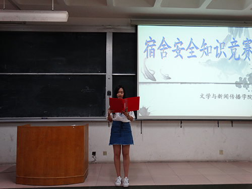 此次比赛由两个活动项目构成:“寝室才艺大比拼”和“宿舍安全知识竞赛”。在“寝室才艺大比拼”比赛活动中,参赛人员以宿舍为单位,在PPT环节,各团队展示了本宿舍的独特宿舍文化。在才艺展示环节,各团队纷纷表演了精彩纷呈,具有浓厚团结气息的宿舍才艺节目。在“宿舍安全知识竞赛”活动中,各参赛选手首先认真地作答笔试题目。随后,各参赛选手分别按照抽签顺序进行了第二环节演讲比赛,此次演讲比赛主要围绕“宿舍卫生”、“宿舍安全”和“对公寓管理的建议”三个方面进行讲演。各参赛选手们准备充分,演讲地绘声绘色,并给公寓建设提供了许多可取的建议。同时,此次比赛将本着公平公正公开的原则评出分级奖项并推选出优秀队伍参加校级“宿舍文化节”决赛活动。