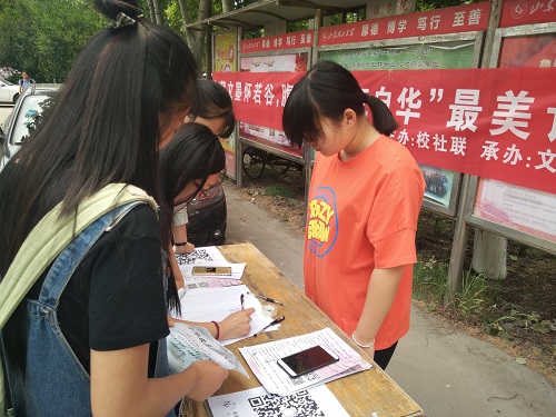(本站讯)青青子衿,悠悠我心。为更好地弘扬中华文化,传承中国古典诗词。近日,由校社联主办,公司蒲公英文学社与红烛社承办的中华最美诗词大赛宣传活动于各大餐厅门口顺利进行。