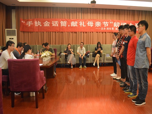 比赛前,金话筒协会指导老师张玉霞为参赛选手送来电话祝福并鼓励他们认真学习,追逐梦想。随后,国学社惊鸿舞拉开比赛帷幕,此次比赛将选手们分为两个小组。首先,第一小组按抽签顺序进行演讲:首先,刘昊把对母亲的情感上升到对祖国崛起、繁荣富强的自豪感;刘祯把歌曲、跳舞、朗诵等多元形式融为一体,充分表达对母亲的爱;徐舒讲述自身真实故事告诉大家珍惜当下,不要在离别时才懂得说爱你;高凯用朗读向妈妈传递“特别的爱给特别的你”。第一小组结束后,各位评委根据选手表现进行点评。而后,大家一同观看母爱主题短视频。短暂休息后,第二小组的激烈比拼正式开始,在他们的演讲中:孙清杨认为母亲是超人,张安静特别感谢母亲陪她度过漫长岁月,邓淋彬为母亲献唱感人肺腑的歌曲,张腾则讲述了母亲陪他走出青春期的温馨故事。最后,此次比赛在对母爱赞颂中顺利结束。