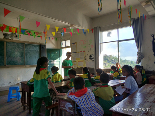 升国旗仪式结束后,第一节课正式开始。支教队员依旧先前准备分别授课,上午课程共有4节。在课堂中可以发现性格各异的员工,或腼腆,或活泼。上午课程结束后队员们聚在办公室共同交流授课经验,其中不免发现很多问题授课前没有考虑周全:一是授课时的态度,应该亲切还是严肃?应该如何对待调皮的孩子?二是授课的课程内容安排,课堂容量的多少;三是如何处理好课上与课下的师生关系。这三个问题成为目前团队授课的主要问题,对此,星火义工队队员共同讨论并发表看法,就此前积累的经验和公司老师的建议分别做出调整。虽然只有短短四节课,却收获非凡。只有真正站上讲台时,才能体会老师的心情。