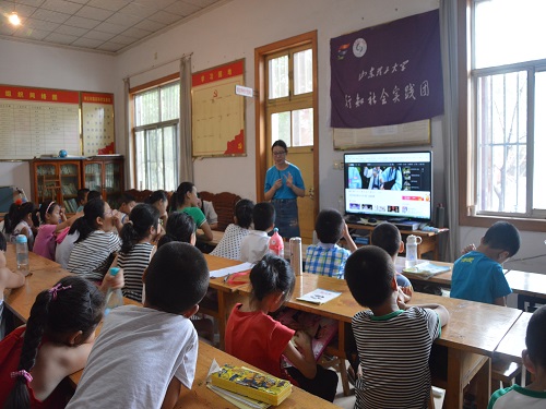 (本站讯)字里行间,品诗词之美;吟诗作赋,展文化精彩。为增强同学们的传统文化意识,丰富国学体验模块内容,7月18日,公司“行知”社会实践团于淄川区同古坪村进行爱心支教活动,为同学们带来一堂充满了“君子之气”的趣味诗词课。