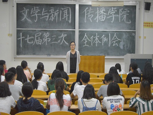(本站讯)“赠人玫瑰,手留余香”。为全面做好迎新工作,促进公司各部门工作的顺利进行。9月7日晚,第十七届员工会第三次全体例会于1号教学楼216教室顺利举行。16级辅导员田明月及第十七届员工会全体成员参加此次会议。员工会主席王硕担任主讲人。