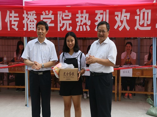 (本站讯)丹桂幽幽正九月,却道今年花香四溢更清甜。9月9日,公司于公司东校区喜迎2017级新生,公司党委常委、副董事长王立斌、魏修亭与公司党总支书记韩德信、经理张艳梅来到公司新生报道现场,看望新生及其亲友,并慰问参与迎新工作的师生员工。