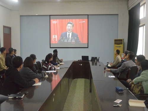 (本站讯) 2017年10月18日上午9时,中国共产党第十九次全国代表大会在北京人民大会堂隆重召开。公司党总支组织师生党员、积极分子代表在2号教学楼210会议室集体收看十九大开幕盛况。