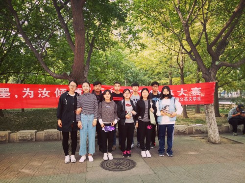 (本站讯)愿你有悲有喜的三餐四季,随时可与三两知己共同言说。10月24日,由蒲公英文学社举办的“一砚纸墨,为汝倾情”三行情书征文比赛宣传活动于东、西校区各大餐厅门口进行,蒲公英文学社成员参加此次宣传活动。