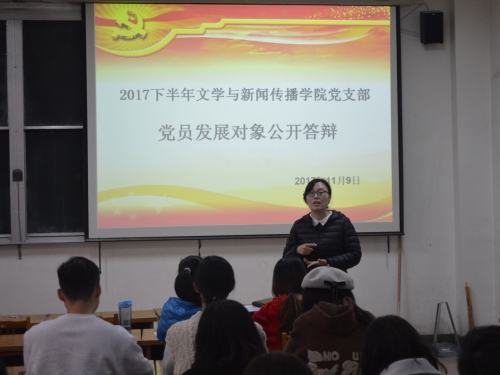(本站讯)为学习贯彻党的十九大会议精神,牢固树立政治意识、核心意识、看齐意识,加强学习,加强实践,切实提高理论联系实际、解决问题的能力。11月9日下午,2017下半年党员发展对象公开答辩于1号教学楼314教室举行。员工党支部全体党员、党员发展对象,入党积极分子代表参加会议。组织员王建利参加并指导答辩,员工党支部书记刘菲菲、田明月主持答辩。