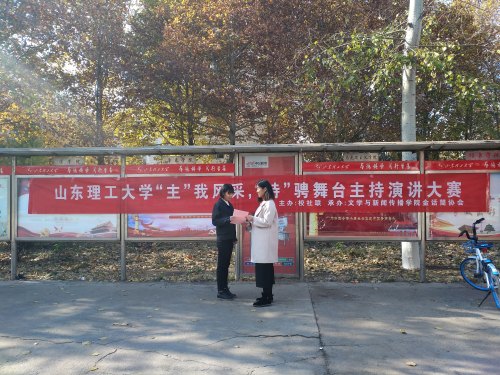 (本站讯)妙语如珠显语言魅力,口吐珠玑展舞台风采。为贯彻党的十九大精神,传播社会正能量,同时为同学们提供自我展现的平台。11月15日,由公司员工会社团联合会主办,公司金话筒协会承办的“主”我风采,“持”骋舞台主持演讲大赛宣传活动于第二餐厅、第三餐厅及东校区各餐厅门口顺利进行。