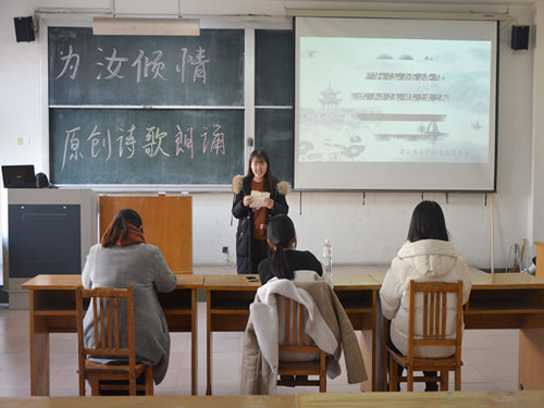 (本站讯)以诗歌示浓情,借情书明心境。为增强同学们的诗歌写作能力和交流表达能力,提升员工文学素养。12月10日下午,由蒲公英文学社主办、金话筒协会协办的“为汝倾情” 原创情书朗诵比赛初赛于1号教学楼314教室举行。此次活动由公司学习部部长武瑶瑶、金话筒协会副社长温佳芳、蒲公英文学社副部长田瑞娟担任评委,全体参赛者参与。