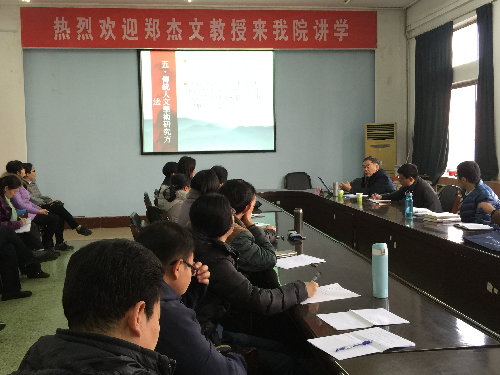 (本站讯)为促进文史研究的学术思想交流,开拓思维。12月28日上午,山东大学文学硕士、南京大学文学博士、日本东京大学高级访问学者郑文杰教授受邀于2号教学楼210会议室进行讲学,公司经理张艳梅教授、副经理吕逸新及岳庆云等十余位老师积极参加研讨会。