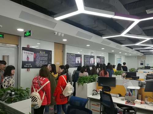 在就业单位,主管丹彤对公司师生的到来表示热烈的欢迎并对公司为学而思网校输送多名优秀人才表示感谢。随后负责人带领大家参观了网校的办公区、休息活动区、网课录播室、学员培训基地等学习工作场所,并向公司师生介绍了网校的工作理念、前景、成果以及员工工作等相关情况。