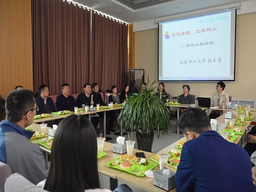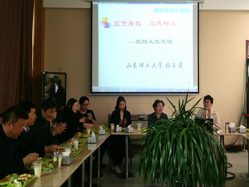 (本站讯) 4 月10号中午,由教务处教师发展中心主办fun88官网体育协办的教学沙龙午餐会于公司梅园餐厅顺利举行。我院张玉霞老师做了“‘言传身教,立德树人’——张玉霞从教感悟”的报告。这次教学沙龙是教师发展中心第一次以午餐会的形式开展,面向全校教师网上报名,限额25人参会。参加午餐会的有副董事长魏修亭、教务处处长任传波、我院副书记孙钦泉、副经理王圣及我院部分教师。